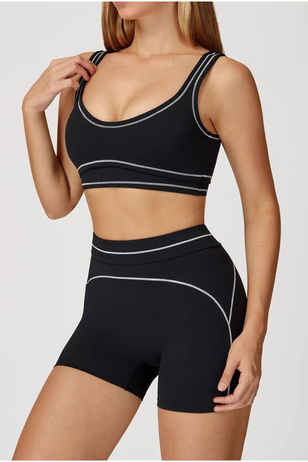 - Kontrastní švové detaily: Dodávají vrstvený, moderní vzhled, který zvýrazní vaši postavu a přidá sportovní eleganci.