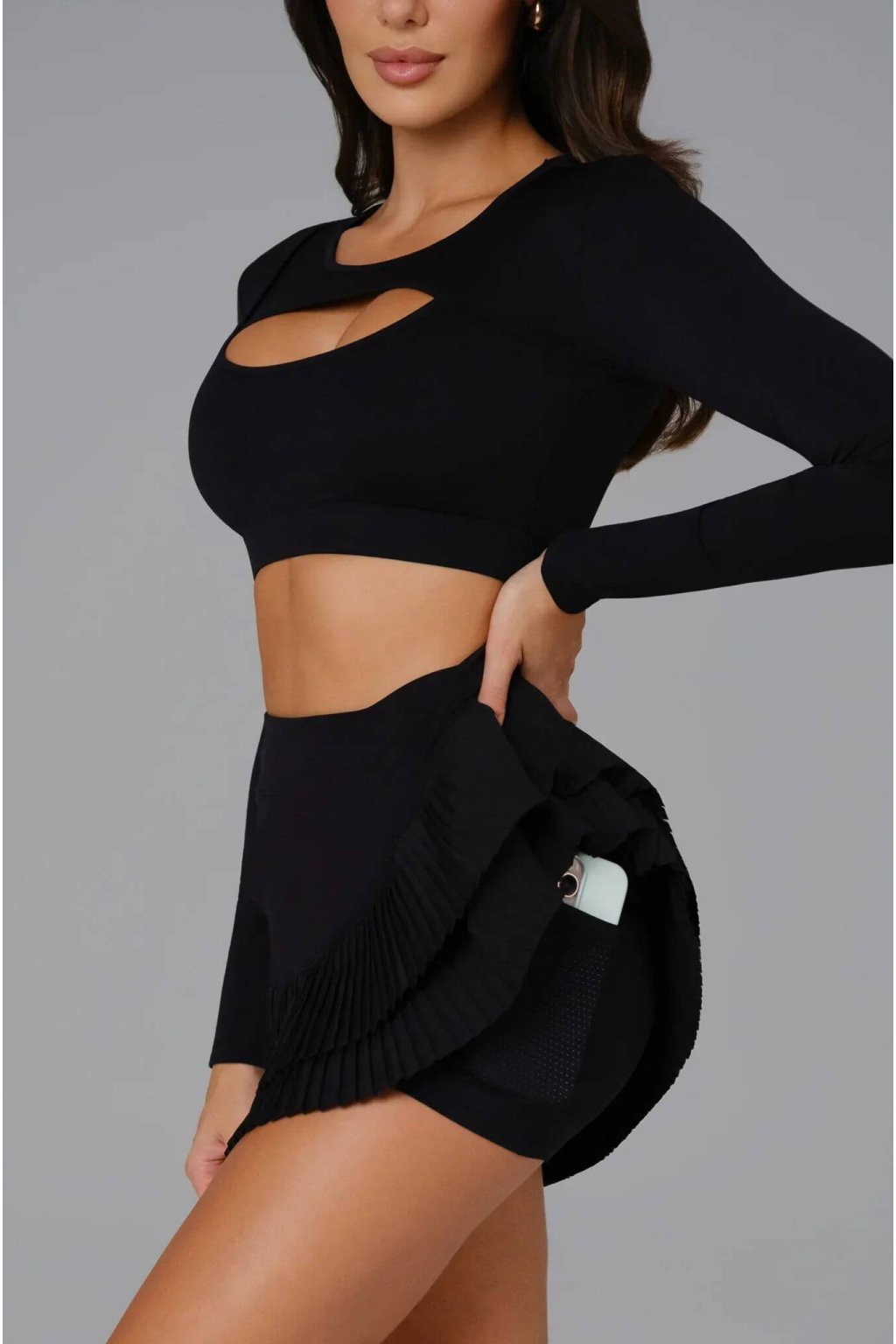 Dámská sukně Deva Black je skvělou volbou pro ženy, které si přejí kombinovat styl, eleganci a pohodlí při sportovních aktivitách i běžném denní nošení. Tato lehce splývavá sukně v černé barvě přitahuje pozornost díky svým jemným volánkům, které dodávají ženský šarm a zajišťují plynulou pohyblivost. Vyrobena je z vysoce kvalitního, pružného materiálu, který garantuje maximální komfort a pružnost, ať už ji nosíte na józe, fitness cvičení nebo při relaxačních procházkách. Díky univerzálnímu designu se perfektně kombinuje s našimi sportovními topy, legínami nebo tenisky, což z ní činí nezbytný kousek do šatníku každé moderní a aktivní ženy.
