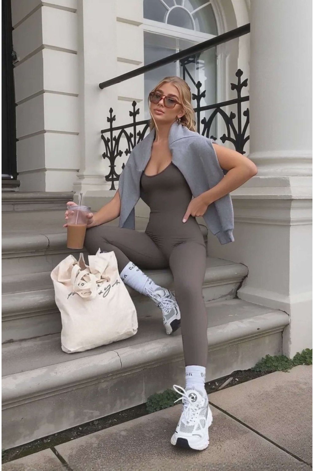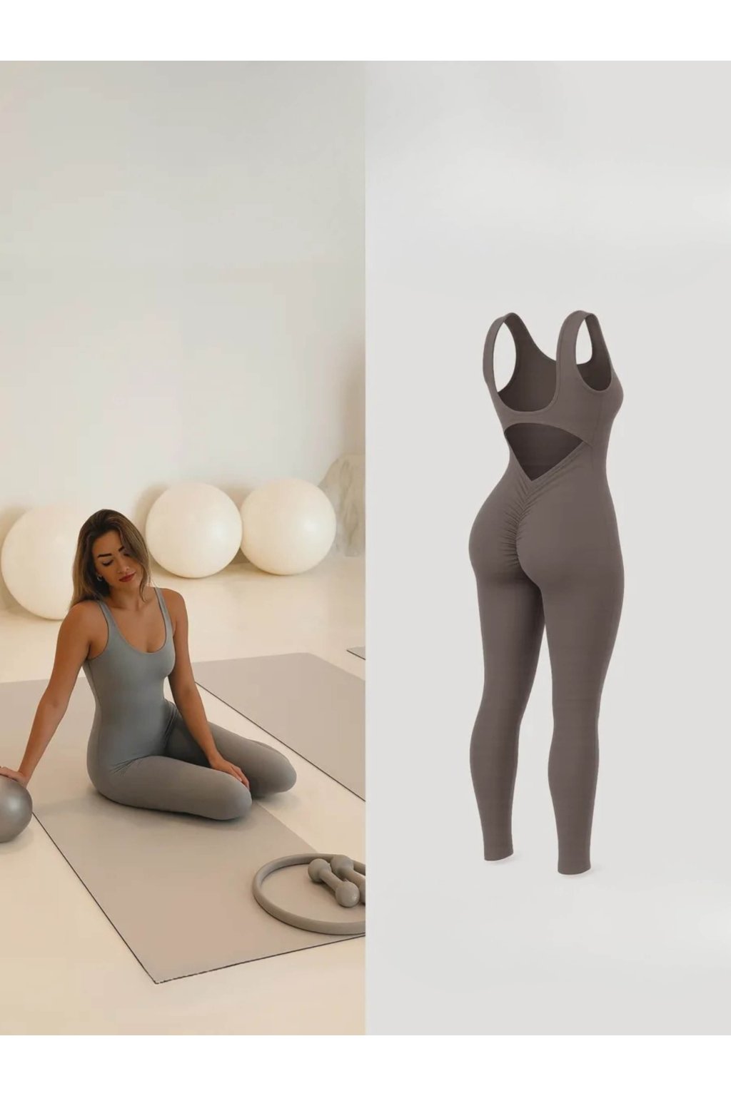 Moderní design doplňuje elegantní výřez v oblasti pasu a řasení na zadní části (scrunch efekt), které přirozeně zvýrazňuje křivky. Minimalistická šedá barva dodává overalu nadčasový vzhled a snadno ho zkombinuješ se sportovními i casual kousky.