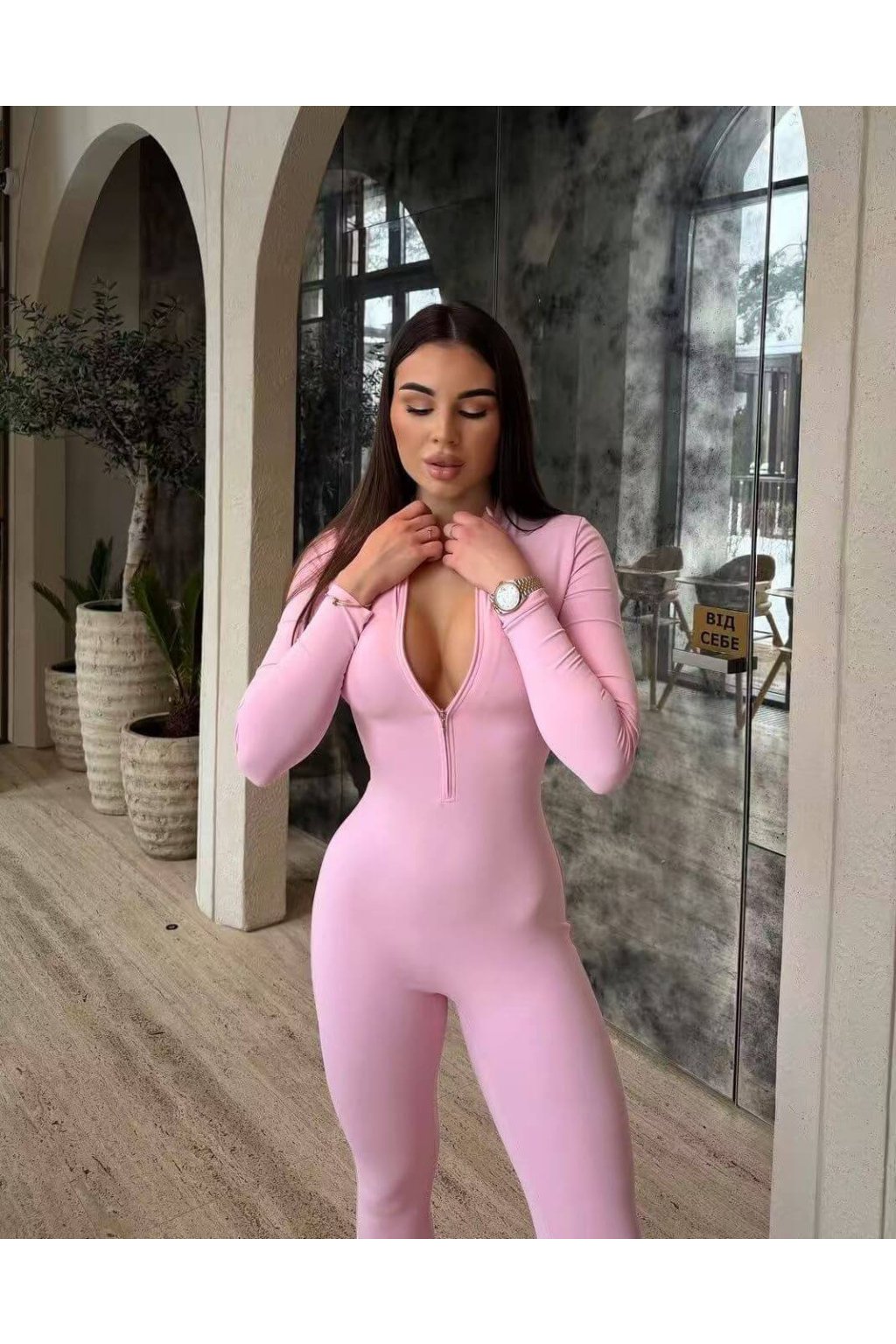 Dámský overal Long Fitted Pink