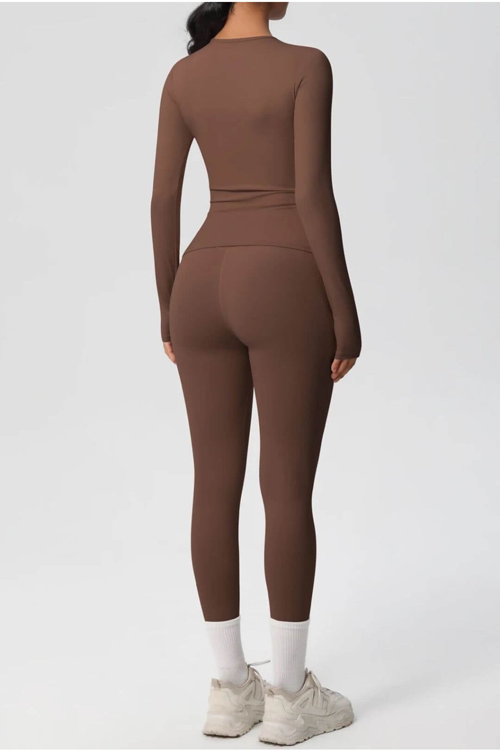 Připravte se na revoluci ve vašem šatníku s Linen Setem – sofistikovaným duetem z dlouhorukávového topu a legín, který spojuje luxusní vzhled s high-performance materiály.