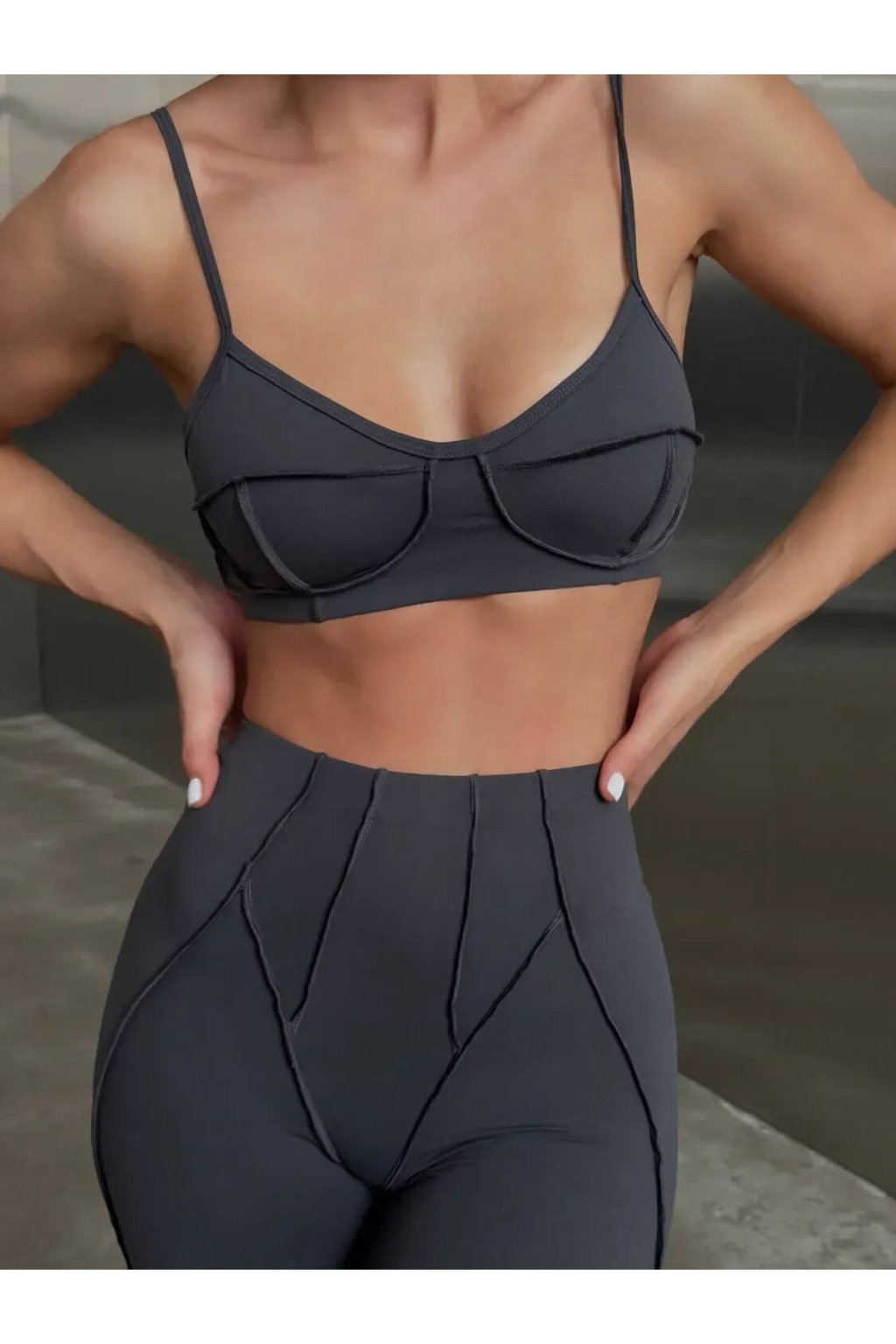 Obohaťte svůj sportovní šatník o sportovní set Seam v šeedé barvě, který kombinuje stylové legíny a sportovní podprsenku. Tento sportovní set s vysokým pasem je navržen s konturovacími švy, které lichotí vaší postavě, zvýrazňují přirozené křivky a vytvářejí atraktivní siluetu přesýpacích hodin. Vyroben z prémiové směsi nylonu a spandexu, nabízí měkký, prodyšný a pružný materiál, který se přizpůsobí vašim pohybům – ideální pro posilovnu, jógu nebo každodenní nošení.